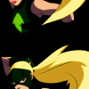 Description: M'gann and Superboy from Young Justice fighting